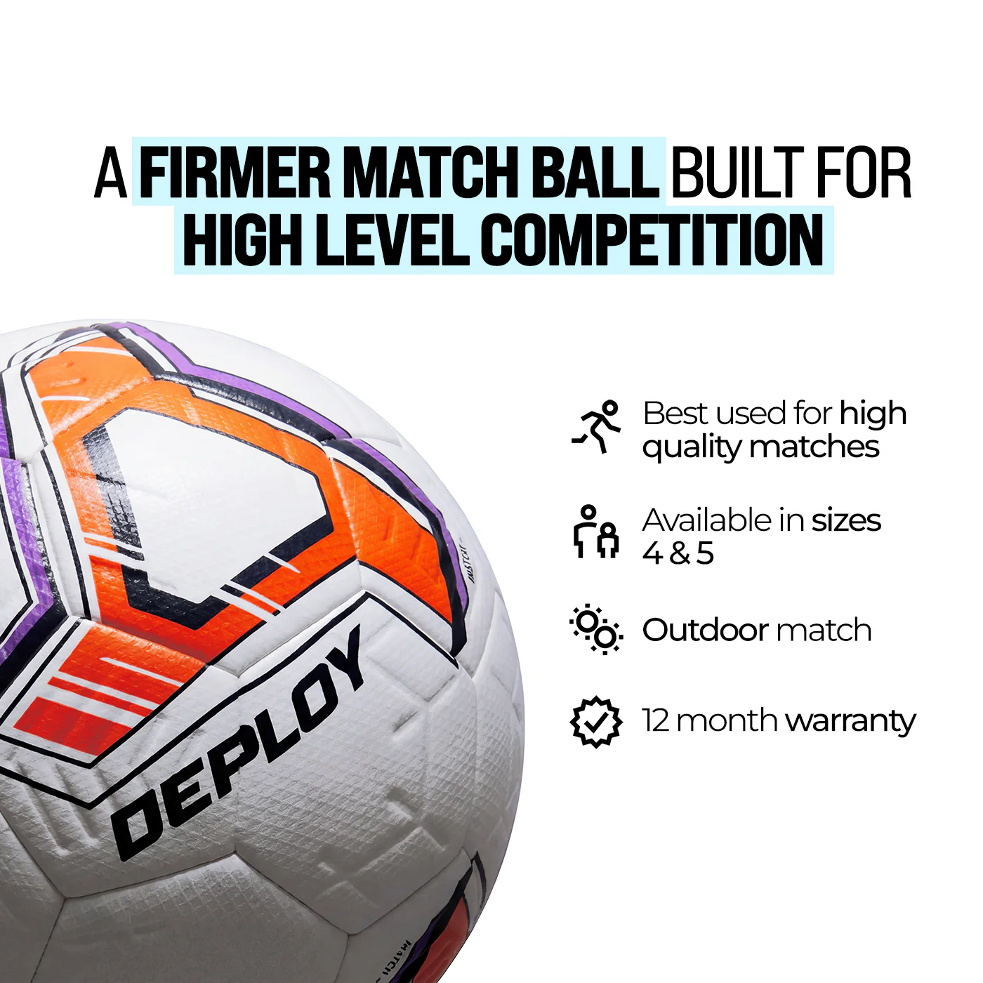 Match Football - Firm Range The Instinct is a match ball within Deploy Firm range, ideal for higher quality football such as Youth Div 1, Youth NPL, JDL and club football.